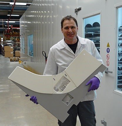 Wenig Theorie also? "Das stimmt, obwohl ich vieles über Lackiersysteme und Ähnliches lese. Es gibt immer mehr Kunststoffsorten und somit ist man auch immer mehr von Spezialisten abhängig. Natürlich studiere ich auch gründlich die Spezifikationen der Lieferanten hinsichtlich empfohlener Schichtstärken u. Ä. Für die Industrie läuft Vieles standardmäßig, aber wir arbeiten immer öfter für die Luftfahrt und die medizintechnische Industrie. Dort gelten hohe Anforderungen."