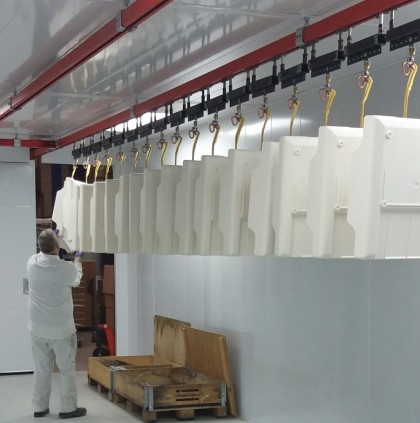Afhankelijk van het product en de wensen worden de producten hangend of liggend gelakt. Hangend lakken vereist veelal voor ieder product specifieke haken. Dat brengt kosten voor de haken met zich mee. Hangend is het echter wel mogelijk om het product aan alle zijden in één keer te lakken, zonder het om te hoeven draaien op een liggend oppervlak. In dat laatste geval kan het nodig zijn om het product na een eerste lakbeurt te laten drogen, voordat het op die zijde kan liggen om de andere kant van lak te kunnen voorzien.